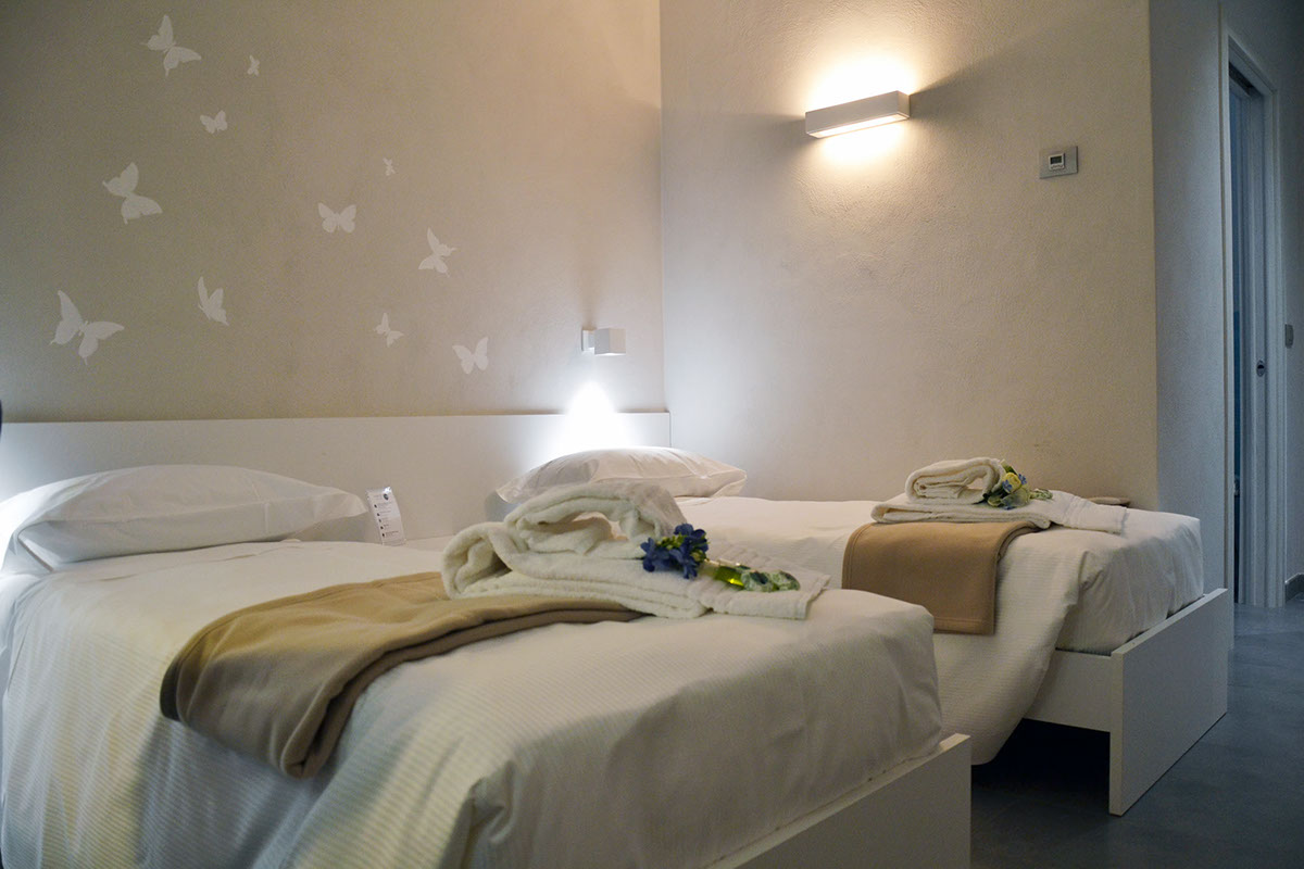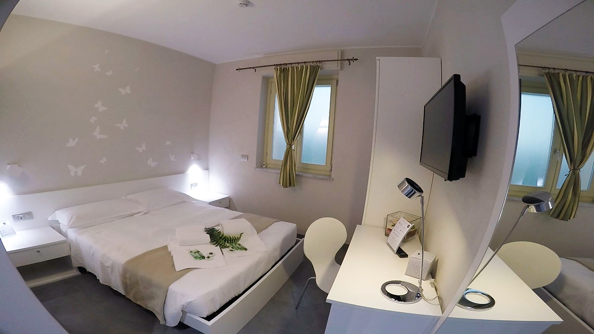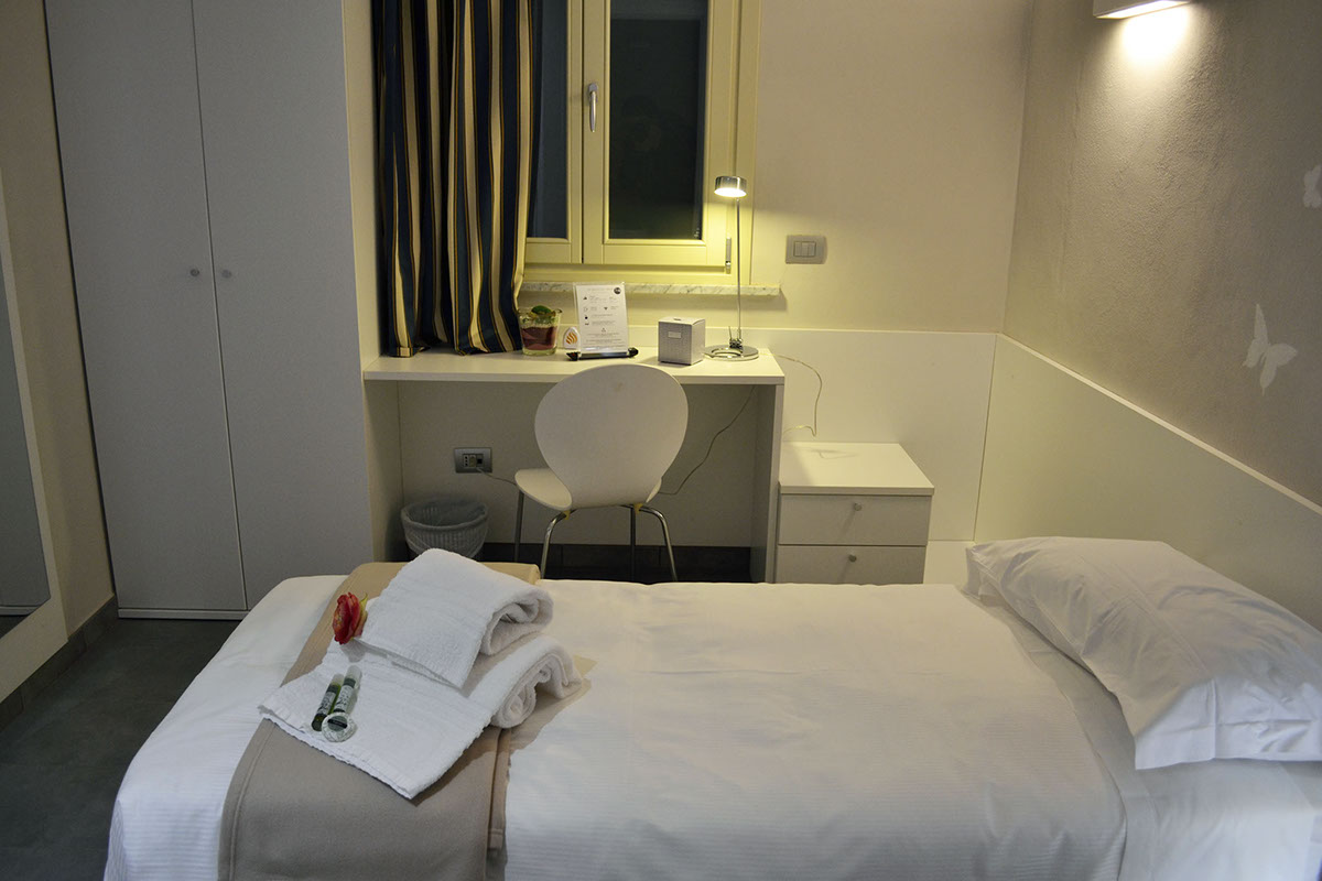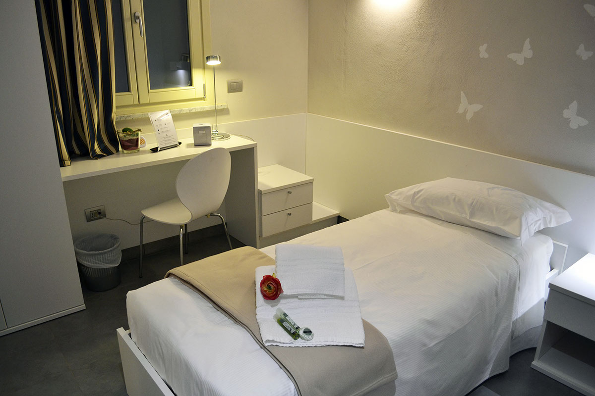 L'Hotel Sant'Anna dispone di camere singole e doppie disposte su un unico piano. Luminose e gradevoli regalano una piacevole accoglienza in un ambiente familiare e curato. Ogni camera è dotata di aria condizionata e riscaldamento, TV LCD, minifrigo, scrivania e connessione Wi-fi gratuita. Ciascuna camera dispone inoltre di bagno con doccia e asciugacapelli ed è attrezzata per le esigenze degli ospiti disabili.
